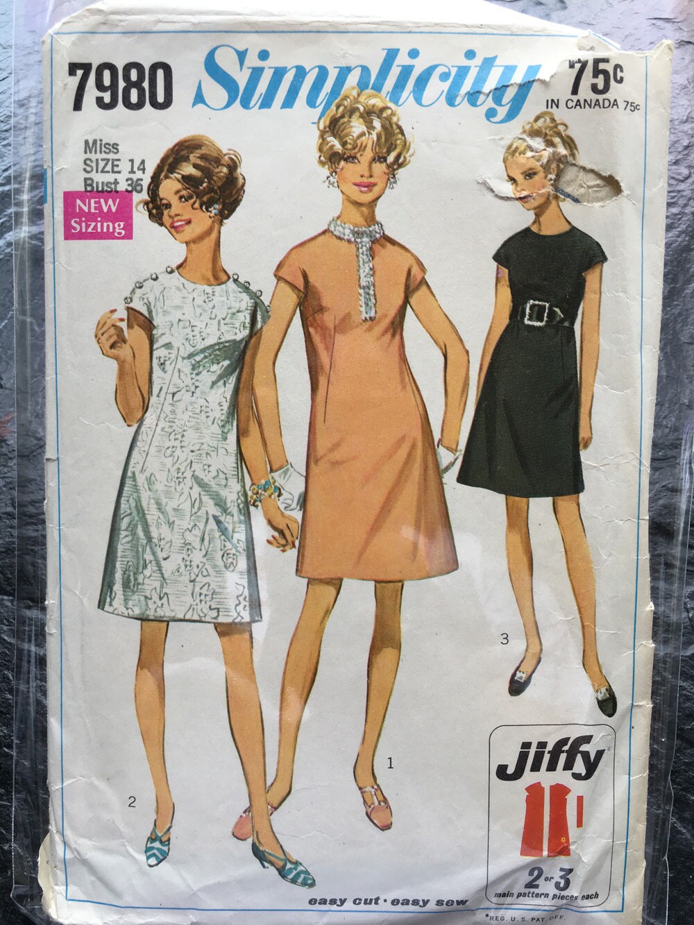 Simplicity 7653 1960s Easy Sew Jiffy Shift Dress Pattern Size 16 1 2 Bust 39 Womens Vintage Sewing Pattern Pattern Gate
