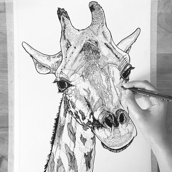 Original Giraffe Drawing Line Drawing Original Drawing Pen Etsy Uk