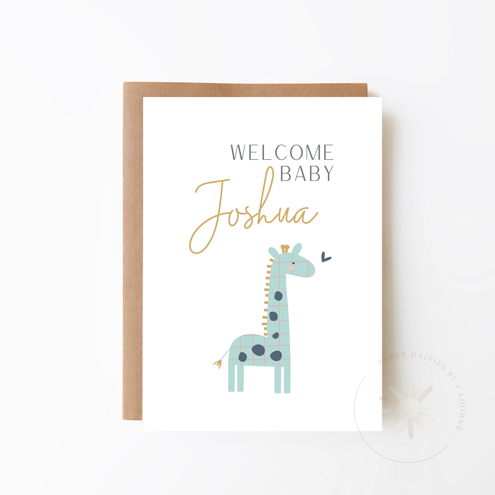 Personalised New Baby Giraffe Card Blue Giraffe Card For Etsy Australia