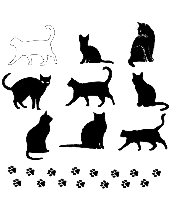 Cat Silhouette Cat Outline Paw Prints Svg Dxf Png Eps Decals Stickers Printable Cut Files Etsy